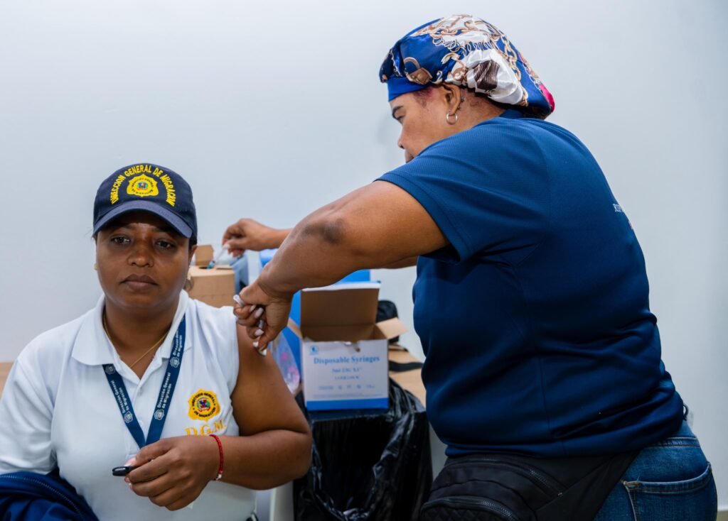 HAINA.–La Dirección General de Migración (DGM), en coordinación con personal del Ministerio de Salud Pública, realizó este martes una jornada de vacunación contra la hepatitis B en el Centro de Interdicción Migratoria de Haina, dirigida a colaboradores de la institución que laboran en esas instalaciones.