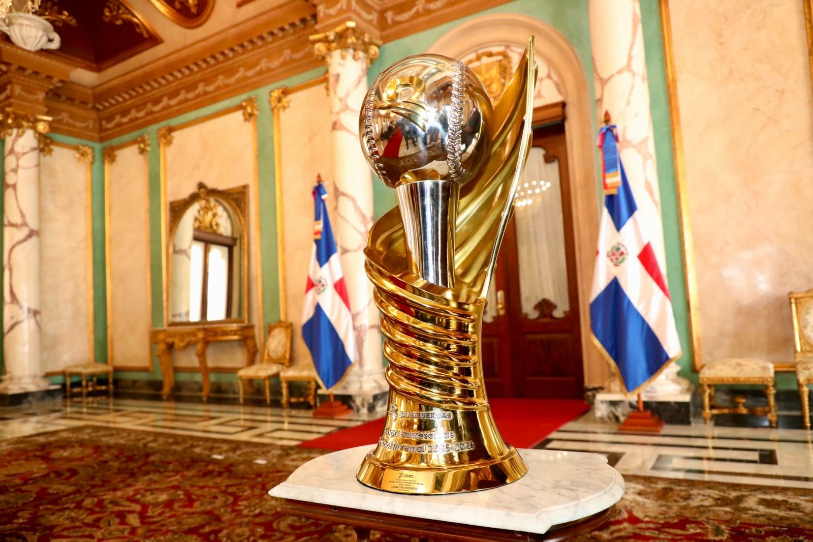 Durante el acto realizado en el Salón de Embajadores del Palacio Nacional, el mandatario entregó la Bandera Nacional al conjunto escarlata, quienes se coronaron bicampeones en el torneo de otoño-invernal que se celebra en el país, como símbolo del honor y la responsabilidad de representar a la República Dominicana en el principal evento del béisbol caribeño.