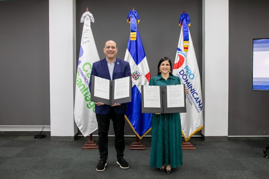 Santo Domingo. Con el objetivo de impulsar la competitividad, la productividad y el posicionamiento internacional de las empresas de la Región Norte, el Centro de Exportación e Inversión de la República Dominicana (ProDominicana) y la Cámara de Comercio y Producción de Santiago firmaron un acuerdo interinstitucional orientado a fortalecer las capacidades de los sectores productivos y promover nuevas oportunidades en los mercados globales.